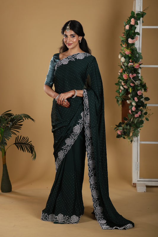 Black Poly Crepe Golden Butti Anarkali Kurta