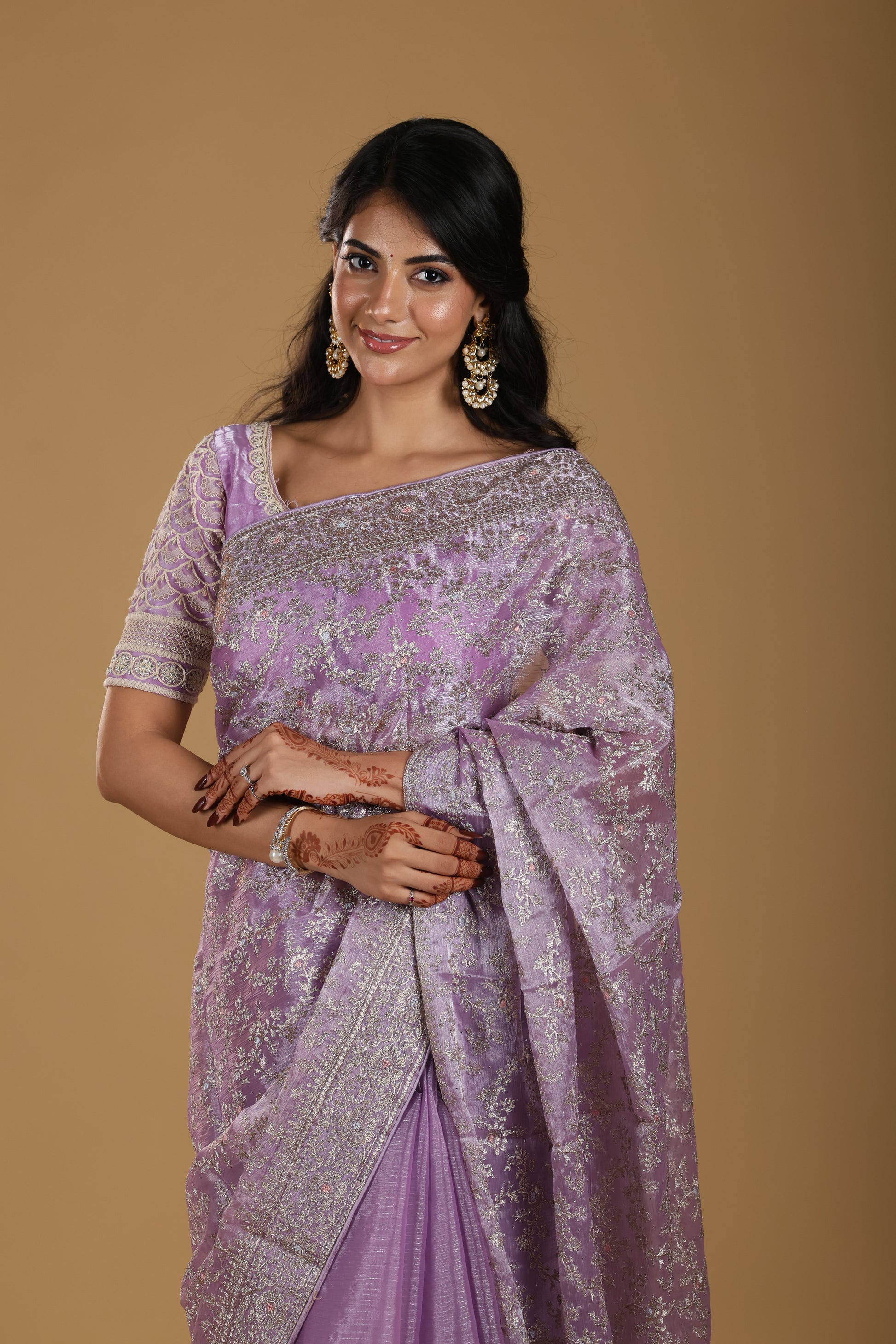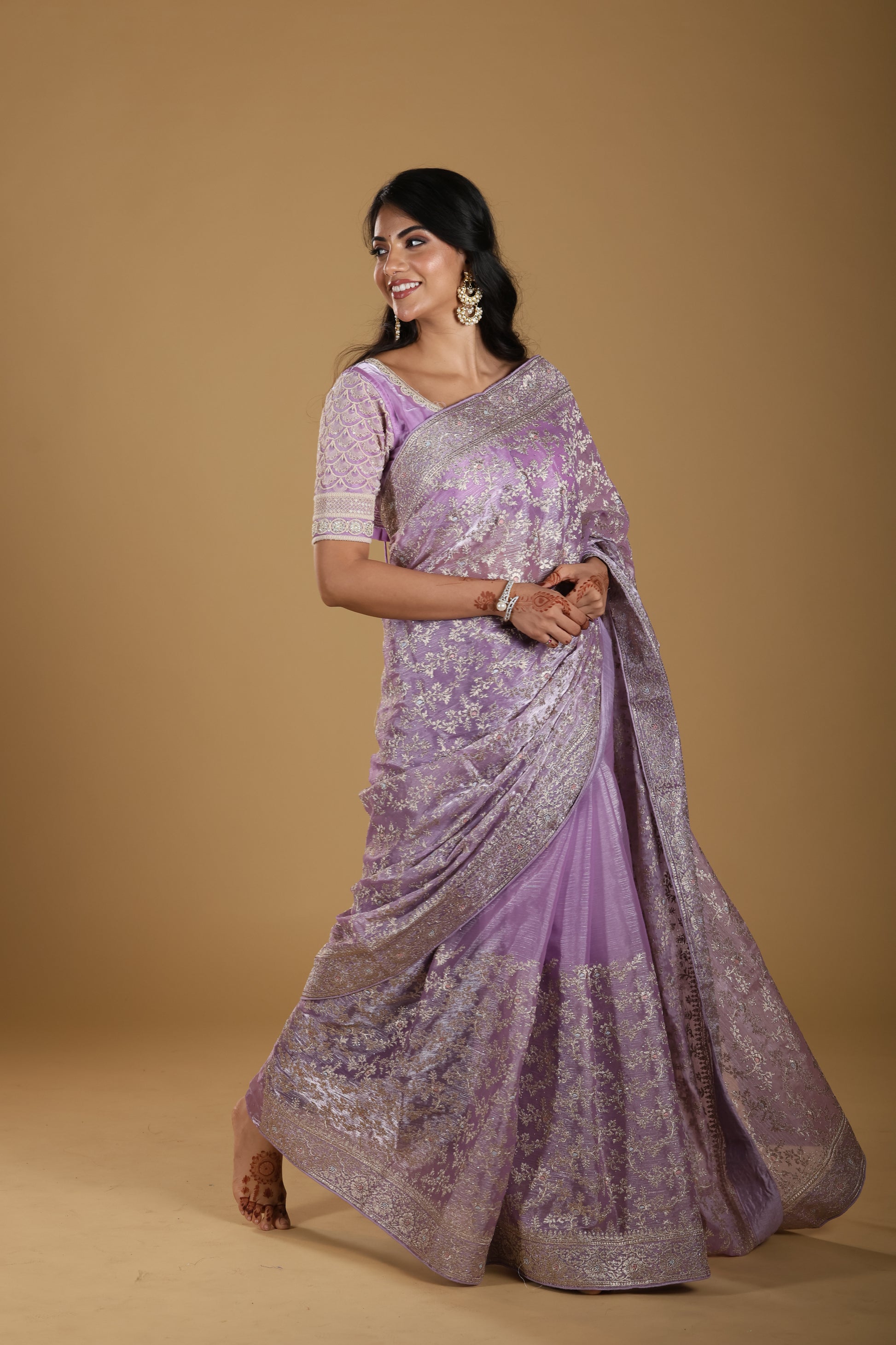 This Cotton Anarkali saree with exquisite Laknovy designs is a perfect blend of elegance and tradition. Designed in a soothing pastel pink shade, it adds a soft and graceful touch to any occasion. Crafted from premium Jimmichu fabric, the saree ensures both comfort and durability, making it suitable for long hours of wear. With a length of 6.5 meters and a blouse included, along with a height of 42, it drapes beautifully to enhance your look. Weighing just 1200 gms, it is lightweight yet rich in appearance, making it an ideal choice for festive gatherings, weddings, or special celebrations.